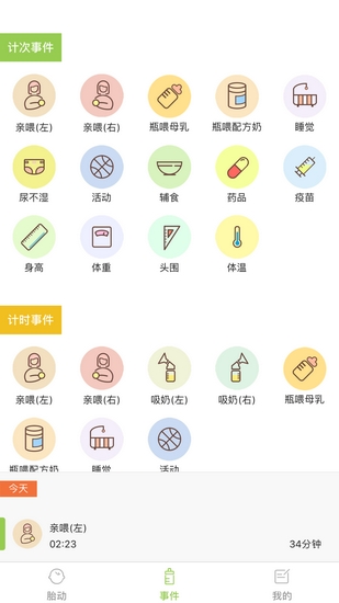 这里我们可以借助豌豆胎动来计数,在感受到胎动时可点击一下,若两次点击间隔少于3-5分钟,会自动统计为一次,准妈妈可以不用考虑时间间隔的问题。软件内置的智能算法能自动过滤无效记录,大大提升监测效率。