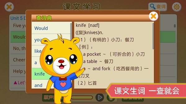 课文一键查词功能采用智能识别技术,只需轻轻一点,就能快速查询课文中的生词释义,大大提升学习效率。