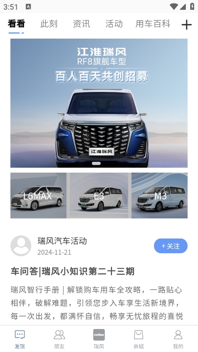瑞风汽车APP是江淮汽车专为瑞风车主打造的一站式智能服务平台,为用户提供便捷的车辆管理与互动体验。通过这款应用,车主可以实时掌握爱车状态、获取最新汽车资讯、参与品牌活动,还能与全国车友交流用车心得。平台整合了车辆远程控制、售后服务预约、会员积分兑换等实用功能,让您的用车生活更加轻松高效。无论是查询保养记录、购买车载用品,还是享受专属优惠,瑞风汽车APP都能满足您的多样化需求,快来下载开启智能出行新体验吧!