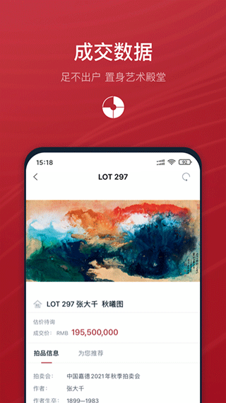 中国嘉德拍卖app是一款专为艺术收藏爱好者打造的线上拍卖平台,它将传统拍卖会的精彩体验完美移植到移动端,让用户足不出户就能参与中国文物及艺术品的竞拍。作为国内领先的艺术品交易平台,所有上拍物品均经过专业鉴定团队严格把关,确保每一件拍品的真实性和收藏价值。用户可以通过手机APP轻松浏览各类拍卖信息,还能体验创新的直播拍卖功能,感受身临其境的竞拍氛围。