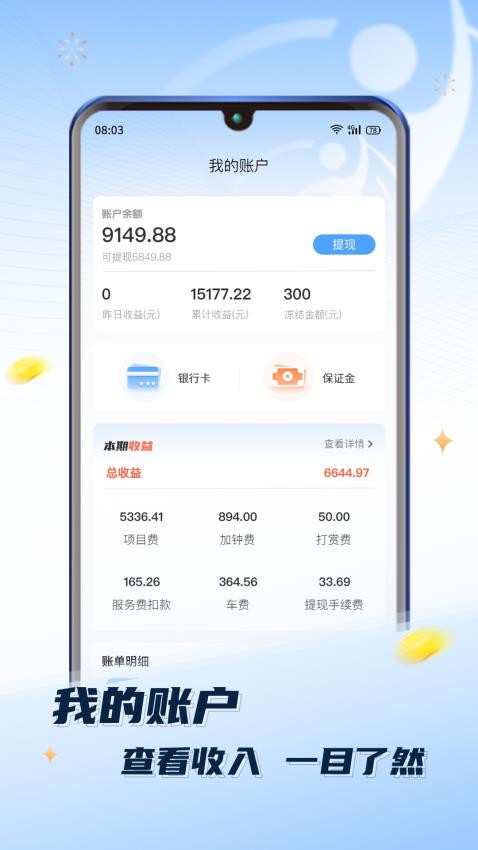 在个人账户中心,技师可以清晰查看各项收入数据,包括日收入、周收入和月收入统计。系统提供详细的收入明细记录,帮助用户全面掌握自己的收入情况。