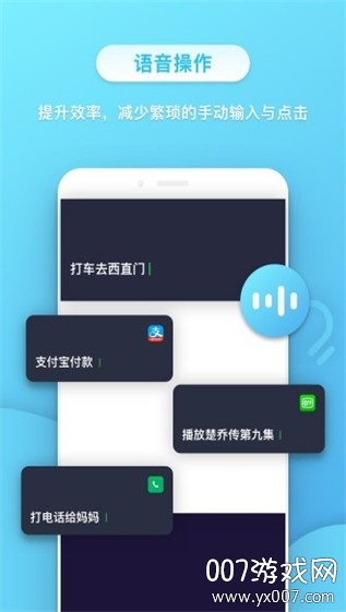 小不点app是一款革命性的手机语音助手软件,它通过智能语音识别技术实现手机操作自动化。只需说出你的需求,小不点就能精准执行各种指令,从基础的拨打电话到复杂的生活服务都能轻松完成。更令人惊喜的是,它具备深度学习能力,能够记住你的语音特征和操作习惯,随着使用次数的增加,识别准确率会不断提升。无论是点外卖、叫车、购物还是社交娱乐,小不点都能成为你贴心的数字管家,让科技真正服务于生活。