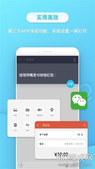 打电话、发短信、设置、播放、优化手机等,调动手机各项功能;支持多语言识别和方言适配,确保各种场景下的语音指令都能准确识别和执行。