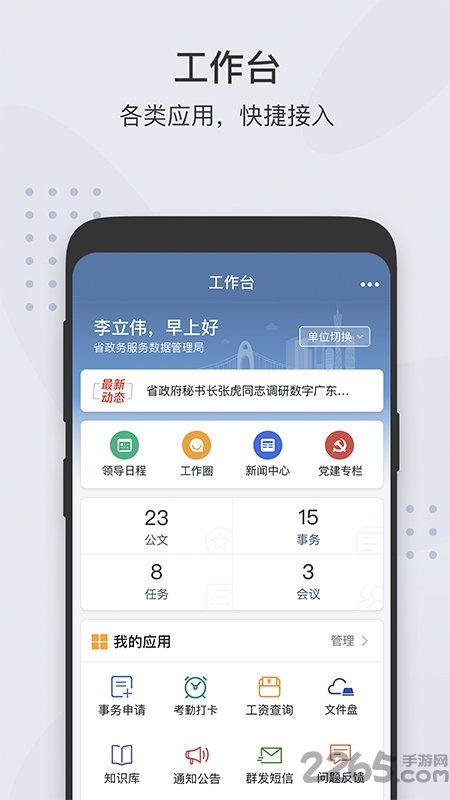 以移动优先的理念,将政务应用逐渐转移到"指尖",建设全省通讯录,实现移动办公和智能消息推送,进一步提升沟通和办公效率。平台还支持生物识别登录,让安全验证更加便捷。移动审批功能让领导随时随地都能处理紧急文件。