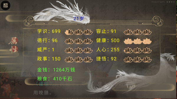 多线剧情与决策影响:包含科举舞弊案、藩王叛乱等300+随机事件,玩家应对方式将改变派系关系与地方民心。王朝治理策略深度:引入"漕运改革""盐铁专营"等真实历史政策,不同地域需采用差异化发展方案。历史沉浸体验:还原三省六部制官阶体系,太医院、钦天监等机构都有专属交互玩法。宫廷建设与管理:建造观星台可提升天象预测准确度,扩建藏书阁能增加皇子学识成长速度。后宫互动与子嗣培养:设置"抓周礼""开蒙宴"等传统仪式,皇子资质将影响继位后的治国加成。