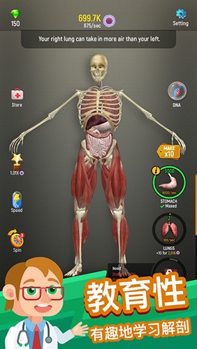 这是一款寓教于乐的养成类游戏,操作简单但内容丰富。玩家可以按照自己的节奏推进游戏,既可以选择快速完成整个人体的构建,也可以放慢脚步,深入研究每个进化阶段的细节。游戏还设有成就系统,鼓励玩家探索人体的各个方面。
