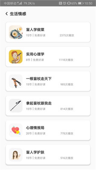 ·八大分类,近百门工作技能、生活技能、认知视野类音频课程,水准高收获大,天天都有新课发布。课程内容涵盖从基础盲文到高级人工智能应用的完整知识链,每节课都经过无障碍适配测试,确保信息传达的准确性和易理解性。