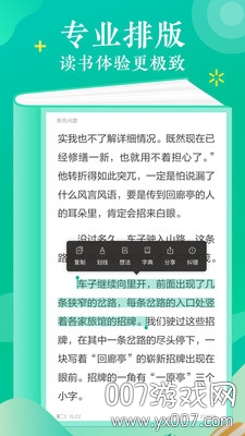 毅智读书网上书城免费版具有诸多独特特色。首先是丰富的阅读皮肤选择,内置多种精美主题,满足不同场景下的阅读需求。界面设计简洁大方,底部通栏布局清晰明了,操作更加人性化。独创的"隐形书架"功能让找书变得轻而易举,无需频繁上下滑动,直接定位到目标位置。此外,软件还支持语音朗读功能,提供多种方言选择,让您享受"听书"的乐趣。