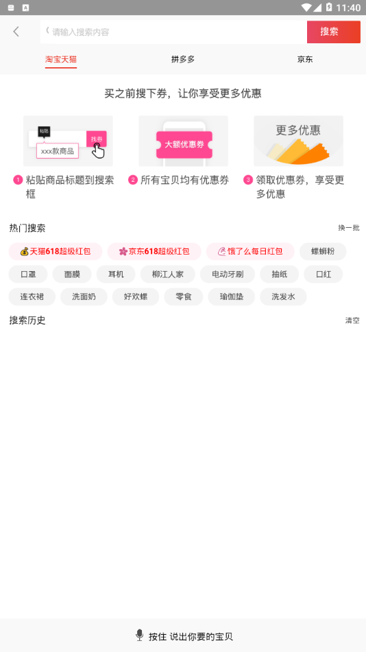 目前集成了淘宝、京东、拼多多等50+主流电商平台,汇聚千万级优质商品资源。通过智能比价系统,自动为用户筛选出全网最低价商品,让用户省钱更省心。平台还特别设置了"限时特惠"专区,每日更新超值爆款商品,满足不同用户的多样化购物需求。