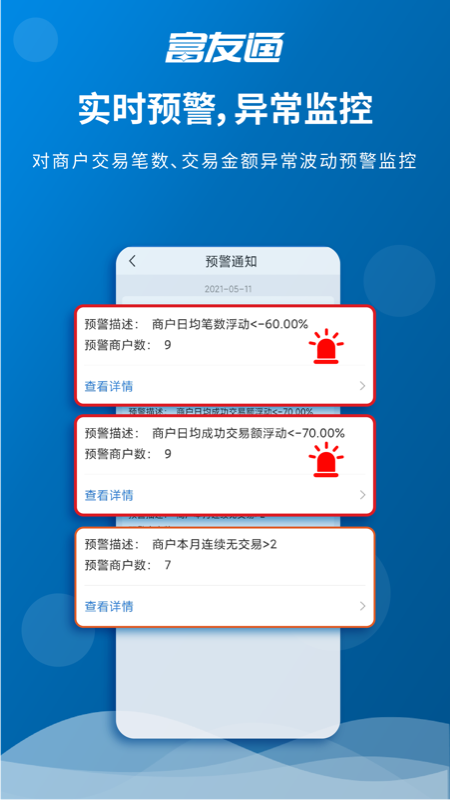 智能监控系统可实时检测商户交易笔数、交易金额的异常波动,及时推送预警信息,帮助用户快速发现并处理潜在风险。