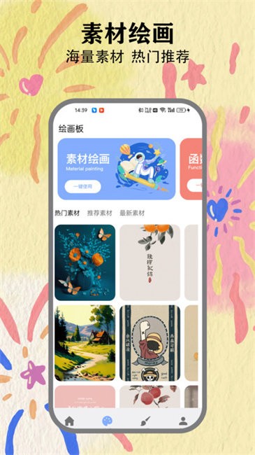 素材库持续更新,包含数千个精心设计的绘画模板,涵盖各种主题和风格。系统会根据用户喜好智能推荐适合的素材,同时提供热门和新上架的内容。一键使用功能让创作变得简单,即使是零基础用户也能快速完成专业水准的作品。