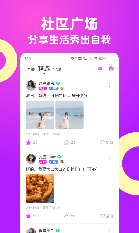 【颜值比拼】不管你是萌萌哒还是美美哒,只要有颜够任性,你就是最靓的风景线。定期举办线上活动,增加用户互动乐趣。