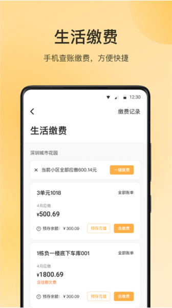 生活缴费:支持水电气暖等各类生活费用在线缴纳,账单明细一目了然,历史记录随时可查。