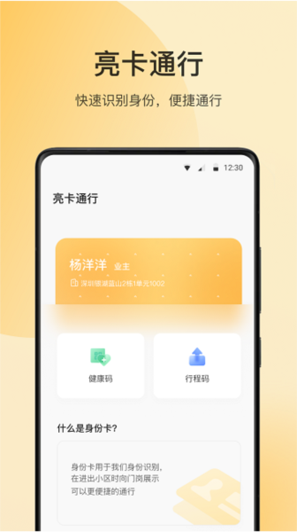 门禁钥匙:通过蓝牙/NFC技术实现手机开门,支持多门禁系统管理,一键切换不同小区。