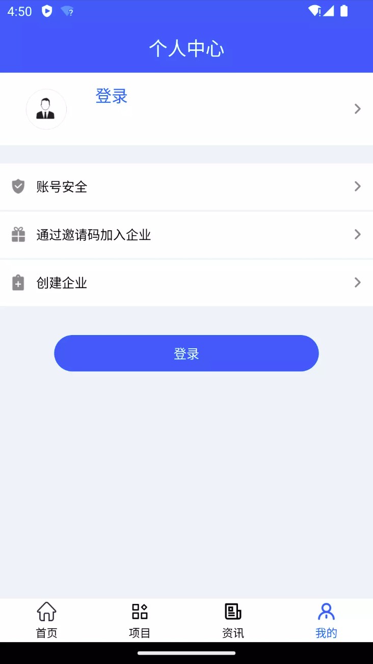 在"我的"页面可进行账号安全设置、加入企业、创建企业及查看隐私政策与用户协议,个人信息管理一目了然。