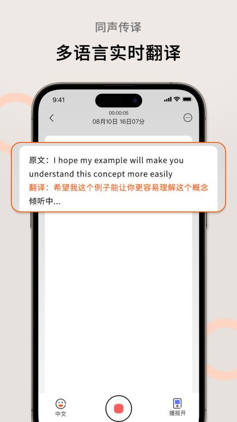 采用先进的神经网络翻译技术,实现近乎实时的语音翻译,延迟低至0.5秒,让跨语言交流如同使用母语般自然流畅。