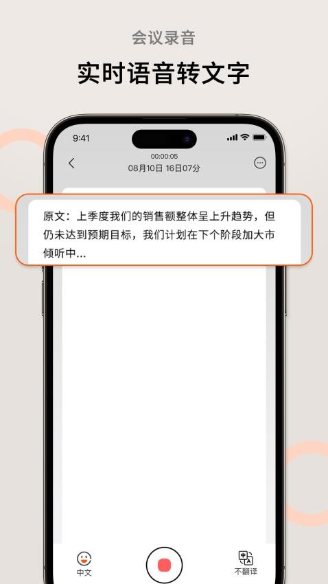 打开应用后,点击录音按钮即可开始会议记录,支持后台持续录音,不影响其他操作。录音过程中可随时添加标记,便于后续查找重点内容。