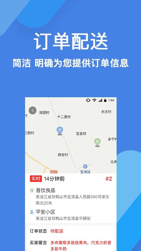 精准定位:运用先进的定位技术,实时更新骑手和客户的位置信息,确保配送路线最优,送达时间精准。