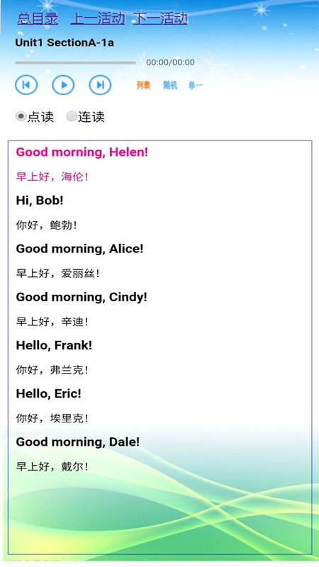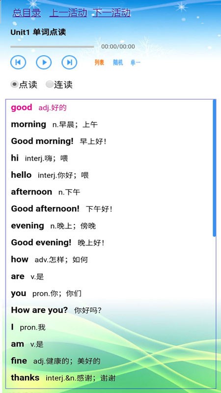 课本点读功能支持多种移动设备,将手机和平板变成便携学习机。与教材完全同步的内容支持单词和句子的即点即读、连读听读,解放家长和老师的辅导时间。音乐播放器内置大量英语歌曲,帮助学生在轻松氛围中培养语感。灵活的翻页功能让学习更加便捷,单词总表提供按单元和字母两种排序方式,满足不同学习需求。可调节的语速设置让听力训练更具针对性。