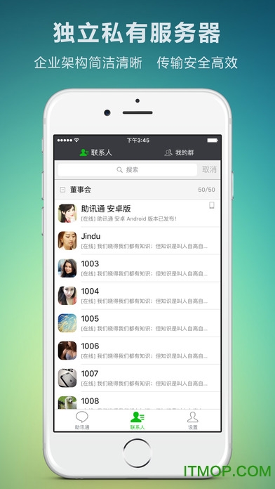 助讯通(WinEIM)是一款采用自行架设服务器模式的企业即时通讯软件,由服务端和客户端两部分组成。企业或团体组织可以自主安装并管理助讯通服务端,所有人员之间的消息、语音、文件收发都直接在企业内部网络中进行,完全不经由任何第三方服务器,既保证了通信的高效性,又确保了数据的安全性。作为企业信息化的基础平台,助讯通不仅功能丰富,而且管理简单高效,运行稳定可靠。其强大的服务器承载能力,单台服务器即可支持高达一万人同时在线,完全满足各类规模企业的通讯需求。