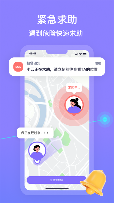 紧急求助:当亲友处于危险环境时,可以通过多种方式发起求助:系统会自动拨打电话或发送消息通知指定联系人,联系人可立即导航至求助者位置;也可直接拨打110报警;系统还提供多种智能守护模式,如伪装来电等功能,为紧急情况提供多重安全保障。