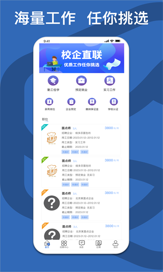 校企直联是一款由北京喜来工网科技有限公司精心打造的校园招聘移动应用,致力于为高校学生、学校以及企业搭建高效便捷的求职招聘桥梁。作为专业的校园招聘平台,该应用整合了海量优质岗位资源,通过智能算法精准匹配用户需求,为求职者提供个性化职位推荐服务。同时,平台还配备了丰富的求职技巧学习资源,帮助应届生全面提升就业竞争力。