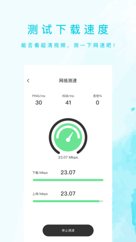 网速测试大师是一款专业的网速测量工具,能够精准测量宽带速度,帮助用户快速了解网络状况。无论是移动网络还是Wi-Fi连接,它都能提供准确的测速数据,让您轻松掌握网络性能。当您对手机网速产生疑问时,只需简单操作,即可全面了解网络连接状态,确保您的上网体验流畅无忧。