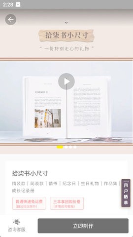 拾柒app最打动人心的地方在于它能让抽象的记忆变得具体可感。那些无处安放的珍贵回忆,可以通过印制精美的书籍永久保存;想要随时欣赏重要的人的照片,可以定制成照片摆台放在触目可及的地方;那些藏在心底的情话,可以写在特制信纸上,装入精美的礼物盒中送给心爱的人。拾柒app就像一个懂你的生活设计师,它不仅能帮你记录生活,更能帮你把平凡的日子过成诗。无论是记录孩子的成长历程、珍藏与爱人的甜蜜时光,还是整理自己的创作成果,拾柒都能为你定制一份独一无二的生活纪念册。