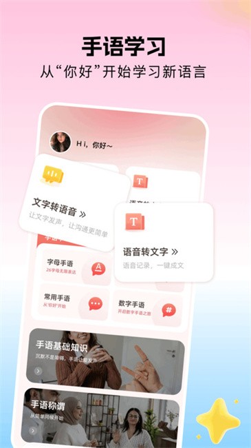 系统化的课程体系从基础到进阶,包含2000+常用手语词汇,每个动作都配有详细分解教学,适合不同基础的用户。