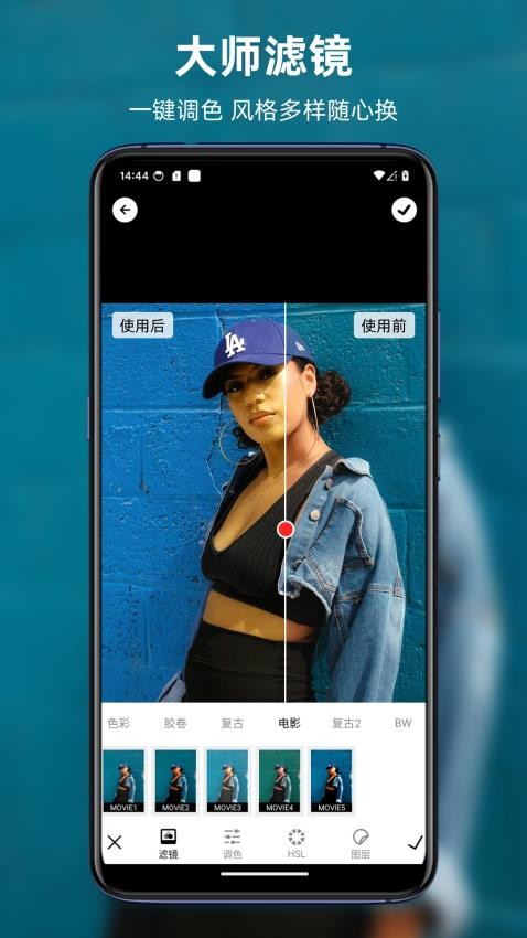 软件里面含有超多大师滤镜,用户可选择自己喜欢的一键加入图片。涵盖复古、胶片、黑白等多种风格,每个滤镜都经过专业调校,一键提升照片质感。