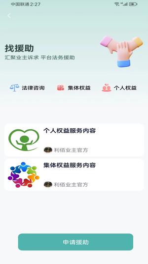 在软件中用户可以选择到申请法务援助来维护业主合法权益,获得专业法律支持。
