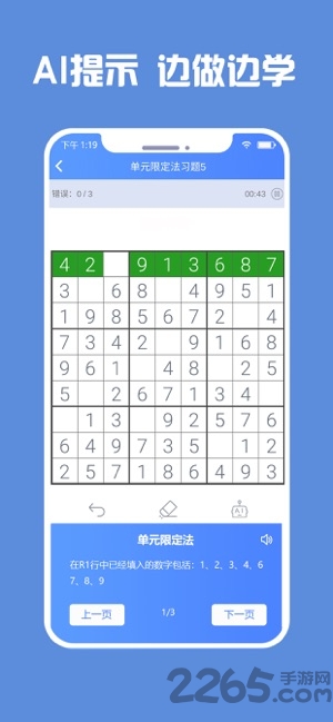 多种难度的关卡,一开始玩家可以根据已有的数字进行思考吗,或选择系统提示;游戏提供多种辅助工具,包括自动检查、候选数字标记等,帮助玩家逐步提高。