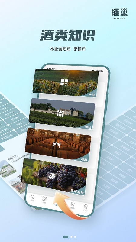清晰分类:酒巢采用专业的酒类分类系统,按照酒种、产区、品牌、价格带等多维度进行科学分类。每个分类页面都配有详细的导购说明和推荐榜单,帮助用户轻松找到适合自己的酒款。