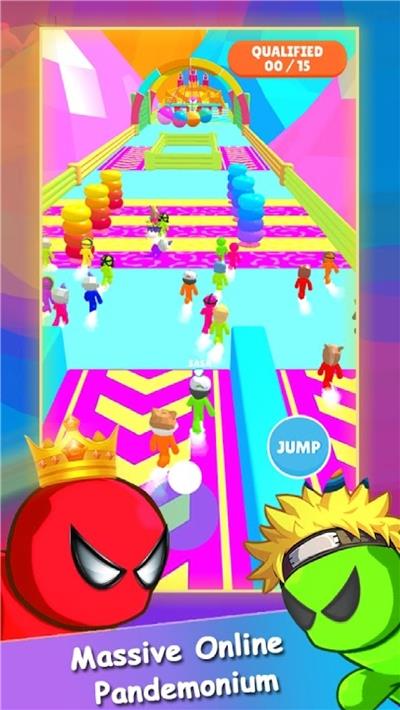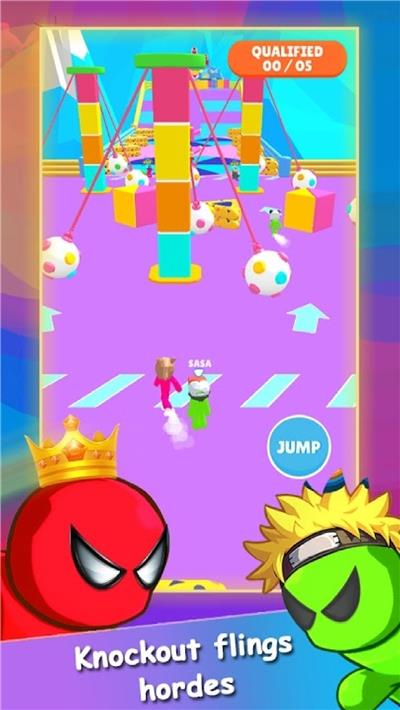 在游戏主界面点击PLAY按钮即可开启多人竞技之旅,系统会智能匹配实力相近的对手。若想调整操作手感,可先进入设置界面自定义按键布局和灵敏度。进入竞技场景后,左侧虚拟摇杆控制角色移动方向,遇到障碍或需要躲避对手时,需要灵活运用闪避动作。在障碍跨越界面,玩家要准确判断障碍物的位置和距离,适时点击JUMP按钮完成跳跃动作,同时注意上方数字提示的剩余障碍数量。游戏还设有训练模式,新手可以先在此熟悉基础操作。