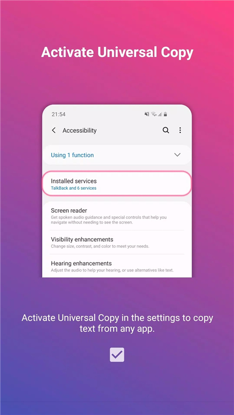 在日常使用手机的过程中,我们经常会遇到一些想要复制的文字内容,但由于某些应用程序或文件格式的限制,用户往往无法直接复制这些文字。为了解决这一困扰,我们隆重推荐universalcopy汉化版这款功能强大的全局复制工具。它不仅能够突破常规限制,还能为用户提供更加智能、便捷的文本复制体验。