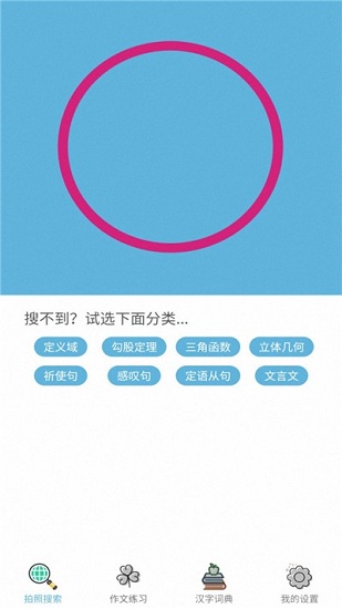 遇到难题不用慌!拍照搜题功能0.3秒出答案,无需注册完全免费,操作简单快捷!