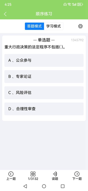 提供多种智能学习模式,包括顺序练习、随机练习、专项突破等,满足不同阶段的学习需求。新增"记忆强化"模式,通过间隔重复算法帮助用户牢固掌握知识点。系统自动记录学习进度,生成可视化学习报告,让备考效果一目了然。
