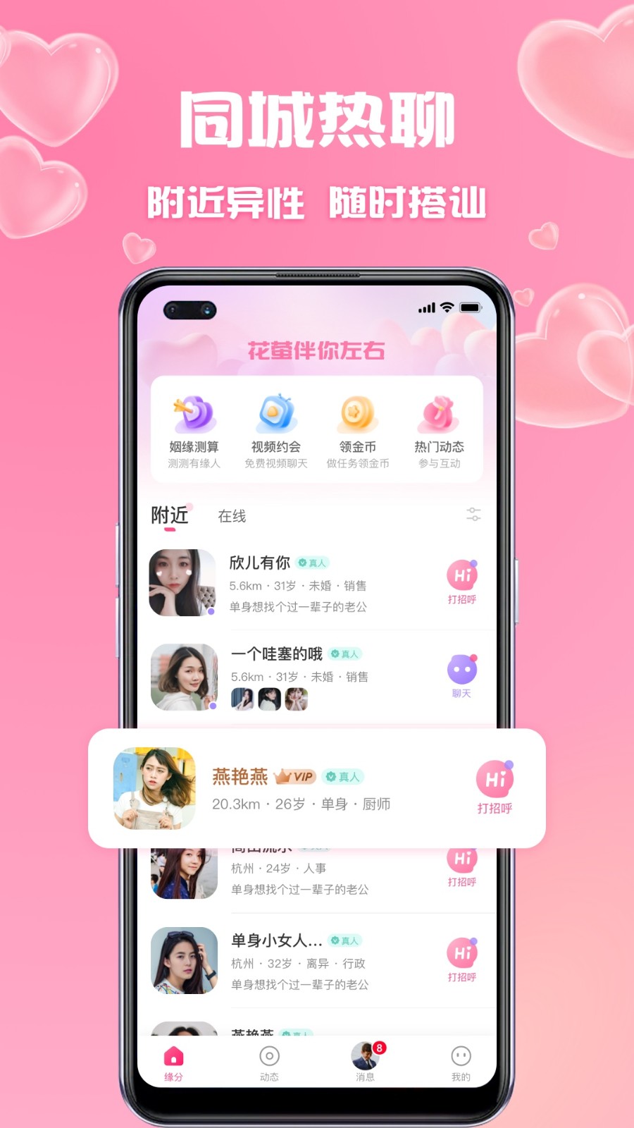 花萤是一款专为单身人士打造的线上交友平台,致力于为用户提供安全、高效的社交体验。平台汇聚了海量真实用户,通过智能匹配系统帮助用户快速找到志同道合的朋友或伴侣。所有用户均需完成实名认证,确保信息真实可靠,让交友过程更加安心。无论是寻找知心好友还是浪漫伴侣,花萤都能满足你的需求。简洁易用的界面设计搭配丰富的互动功能,让每一次交流都充满乐趣。快来加入花萤,开启你的社交新篇章吧!