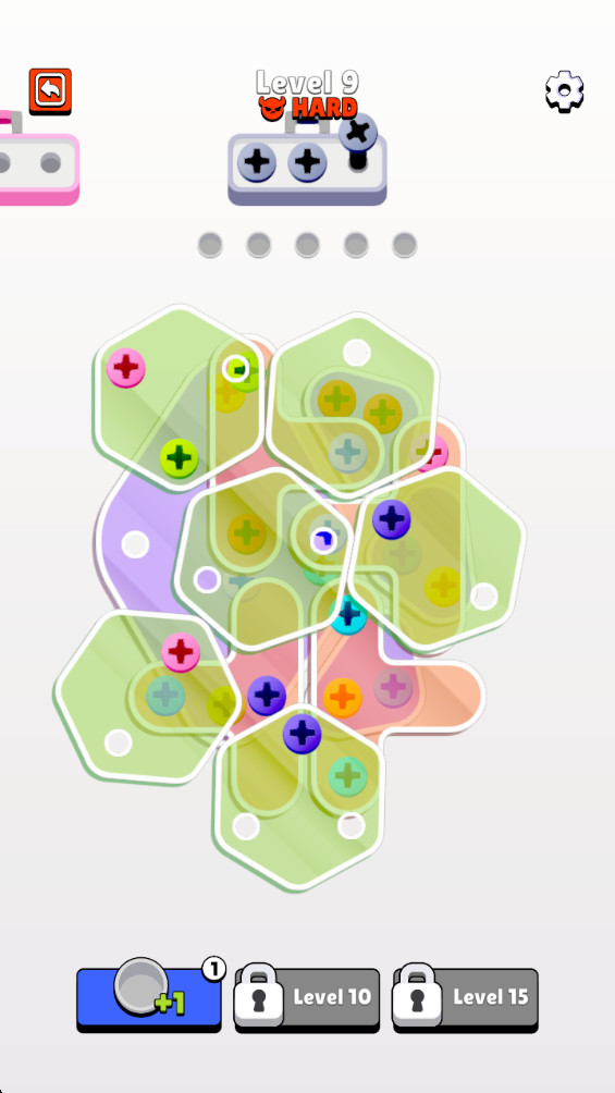 随着游戏进程的推进,你会发现关卡中隐藏着各种实用道具。这些道具可能是能够改变螺丝颜色的魔法棒,或是可以瞬间消除多个螺丝的炸弹,合理使用这些特殊道具将帮助你更轻松地应对复杂局面。每完成一个关卡,系统都会根据你的表现给予丰厚的奖励,这些奖励可以用来解锁新的游戏场景或购买更强大的道具。