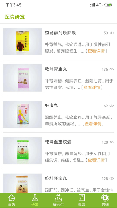 【医院研发】作为医院官方研发的专业医疗平台,汇聚了医院十多位权威专家团队十余年的临床经验结晶。依托医院自主研发的四大系列、20多种特色药物,形成了独特的诊疗体系,这也是医院在生殖健康领域保持领先怀孕率的核心优势。这些独家资源通过APP直接惠及广大患者。