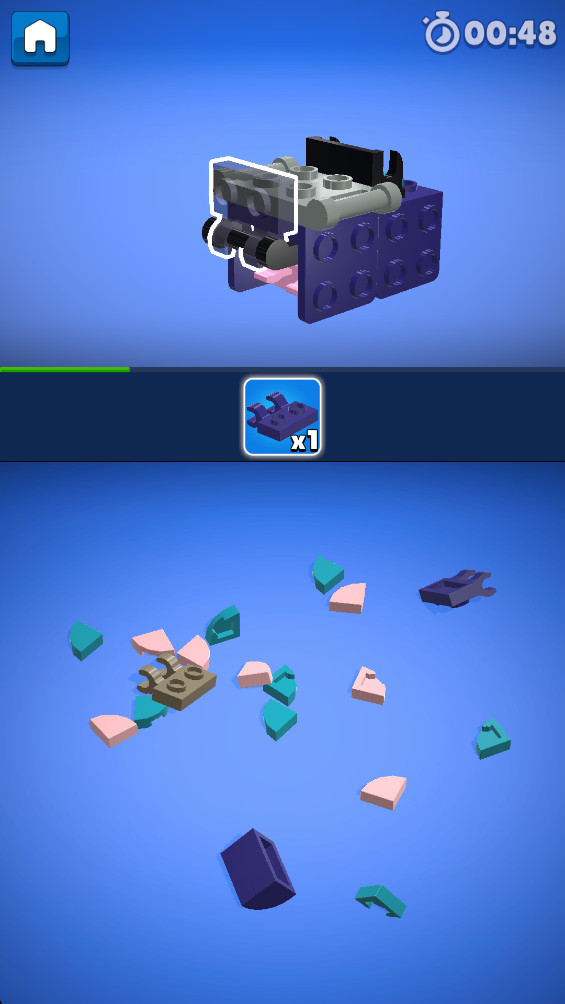 游戏的核心玩法简单有趣又充满挑战。首先,你需要从众多积木中挑选出与参考图完全匹配的模型积木,这个过程考验你的观察力和空间想象力。游戏采用了智能化的积木摆放系统,选中的积木会自动精准定位,省去了手动调整的麻烦,让你可以专注于创意设计本身。