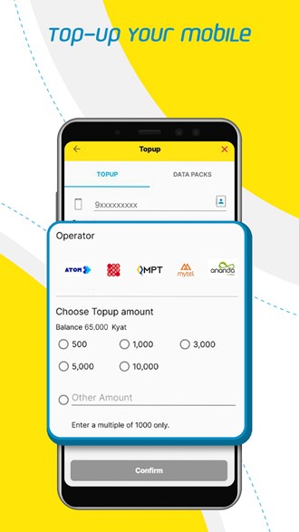 • 全运营商话费充值支持,提供ATOM、MPT、Ooredoo等主流运营商的话费及流量套餐购买