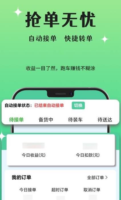 用户只需拿起手机,在订单列表中选择合适的订单,点击"接单"按钮即可完成操作。整个过程仅需几秒钟,大大提升了接单响应速度。系统会自动保存常用接单设置,让重复性操作更加便捷高效。