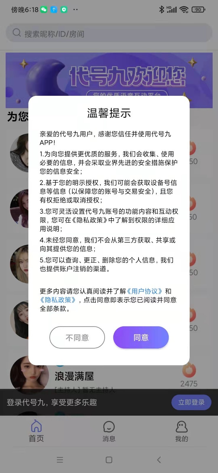 作为一款深受年轻人喜爱的高质量语音社交app,代号九app为用户提供了随时随地畅聊的便利。平台拥有海量主题聊天室,包括情感交流、游戏开黑、段子分享等多种类型,满足不同用户的社交需求。简洁直观的操作界面搭配多元化的主播阵容,让每一次语音互动都充满乐趣。无论你是想结交新朋友,还是寻找娱乐消遣,这款app都能带给你意想不到的惊喜。