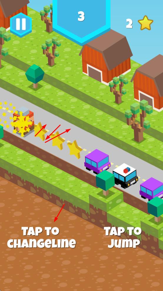 新手玩家首先需要熟悉基本的操作方式,游戏采用简单直观的触控操作。你将操控像素风格的角色在精心设计的乡村道路场景中移动,通过左右滑动屏幕来切换道路,让角色沿着道路不断前进。在奔跑过程中,要时刻关注屏幕上方的数字变化,这些数字会显示你的奔跑距离和当前得分。