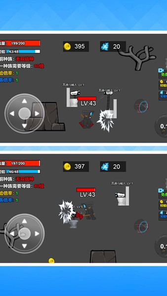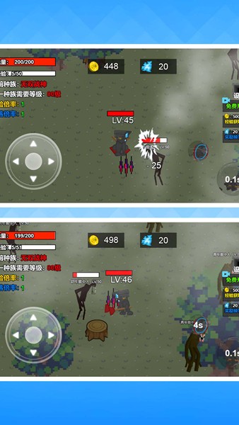 怪物进化大作战的操作十分简单直观,采用经典的虚拟摇杆+按键设计,即使是没有游戏经验的新手也能迅速上手。简洁明了的UI设计和流畅的操作体验,让这款游戏成为了消磨时间的绝佳选择。