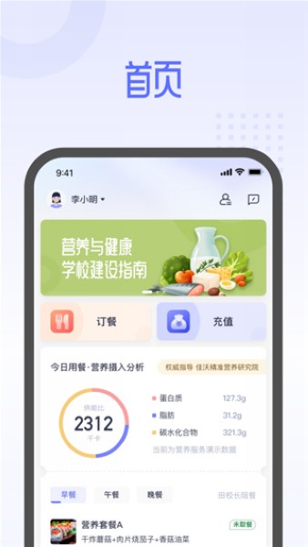用户可以在这里为孩子进行校园订餐。选择日期和餐次后,系统会推荐最适合的套餐组合。