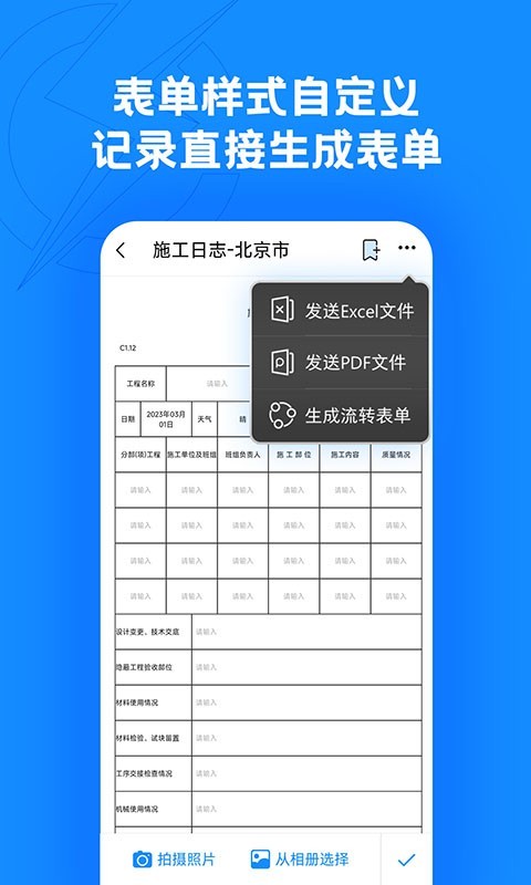 该软件专为工程项目管理场景打造,能够显著提升工作效率。通过智能化的功能设计,它可以帮助用户快速完成现场相关工作,自动生成工作备忘、日志、记录表、整改单、罚款单等各类资料,实现工作信息的重复利用。这不仅避免了"做完一项工作还要再去编写相关资料"的麻烦,更从根本上消除了重复劳动,真正实现了减负提效的目标。