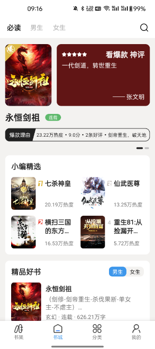 打开app后首先会进入偏好选择界面,用户可以根据个人兴趣勾选喜欢的题材类型,系统会根据选择进行个性化推荐。进入主界面后可以看到精心编排的推荐书单,包括新书速递、热门榜单、编辑精选等多个板块。分类页面提供了详细的题材筛选功能,从经典文学到网络热文应有尽有。找到心仪的小说后,点击即可进入阅读界面,支持多种翻页模式和字体调整,让阅读更加舒适便捷。