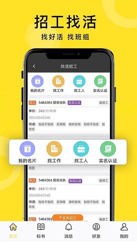 【找工作的工人】功能让建筑工人能够实时获取全国各地的工地招聘信息,轻松找到合适的工作机会。【工头找工人】功能则帮助工长快速匹配可靠的工人资源,实现用工需求的高效对接。平台独创的【月薪】结算系统操作简便,有效解决建筑行业常见的工资拖欠问题。创新的【信用支付】功能为资金周转困难的工头提供解决方案,通过信用额度支付工人工资,保障工人权益。